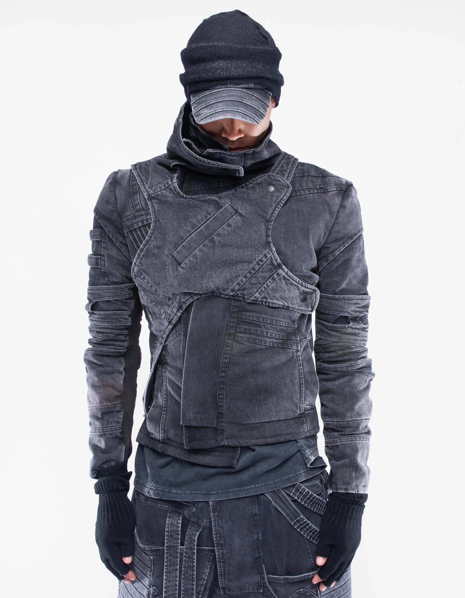 vintage-washed black with padded long sleeves