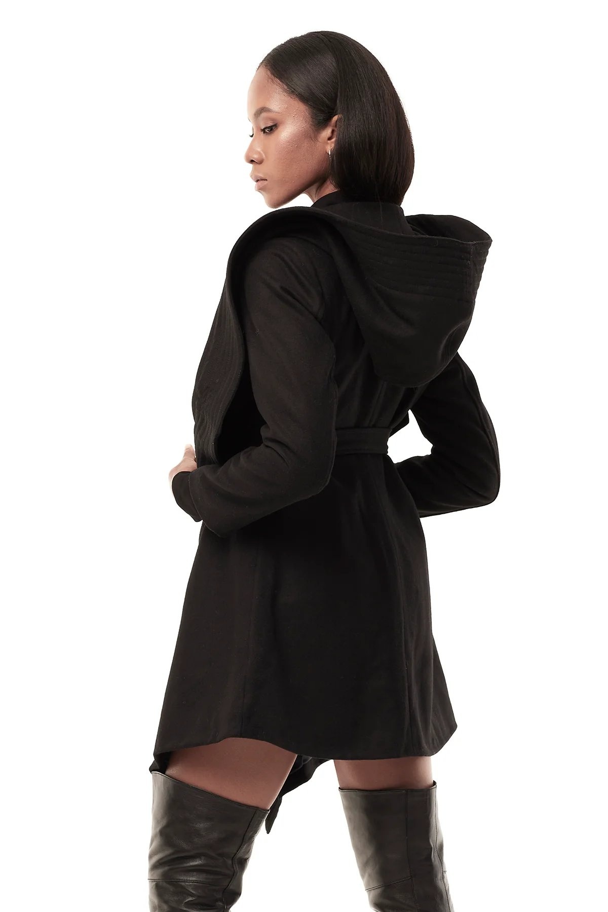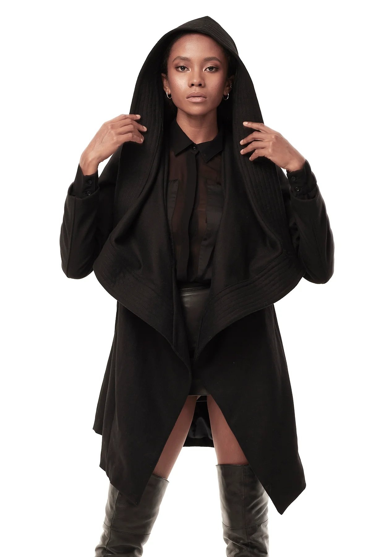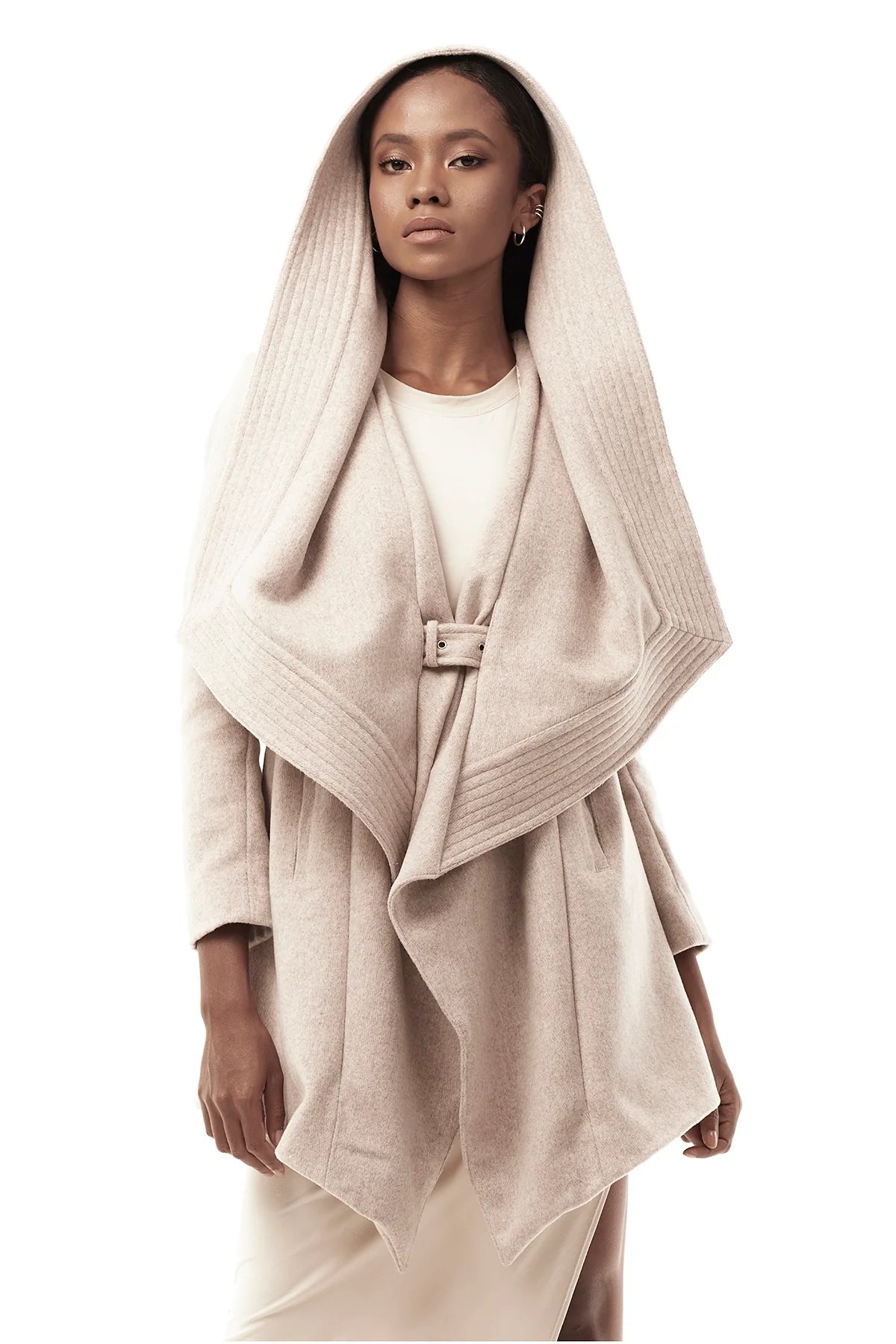 Create an accountStun in the chicest update to our best-selling coat. The new Draped Hood Coat features a dramatic draped wool hood, fitted sleeves, and a built-in buckle waist belt closure.