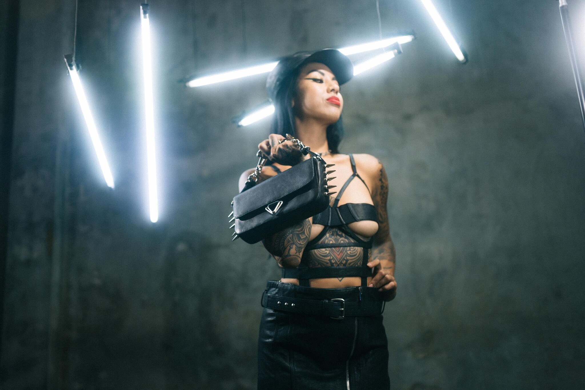 Make a daring statement with this bag, designed for those who love edgy, industrial aesthetics.