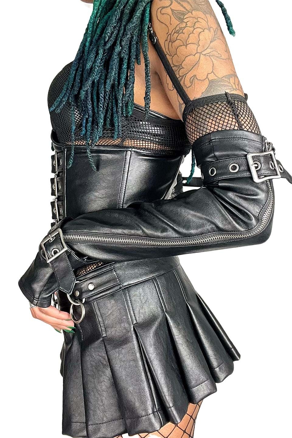 Create an accountLip Service classic Elbow Length Fingerless PVC GLOVES!!! Features a full length zipper, silver buckles and thumb hole. BUCKLE UP!