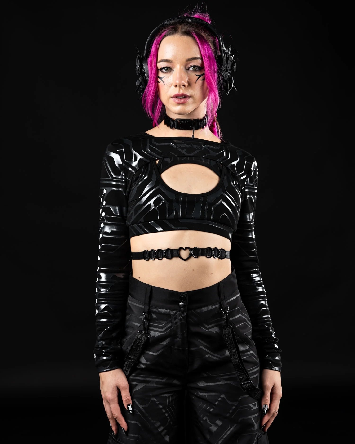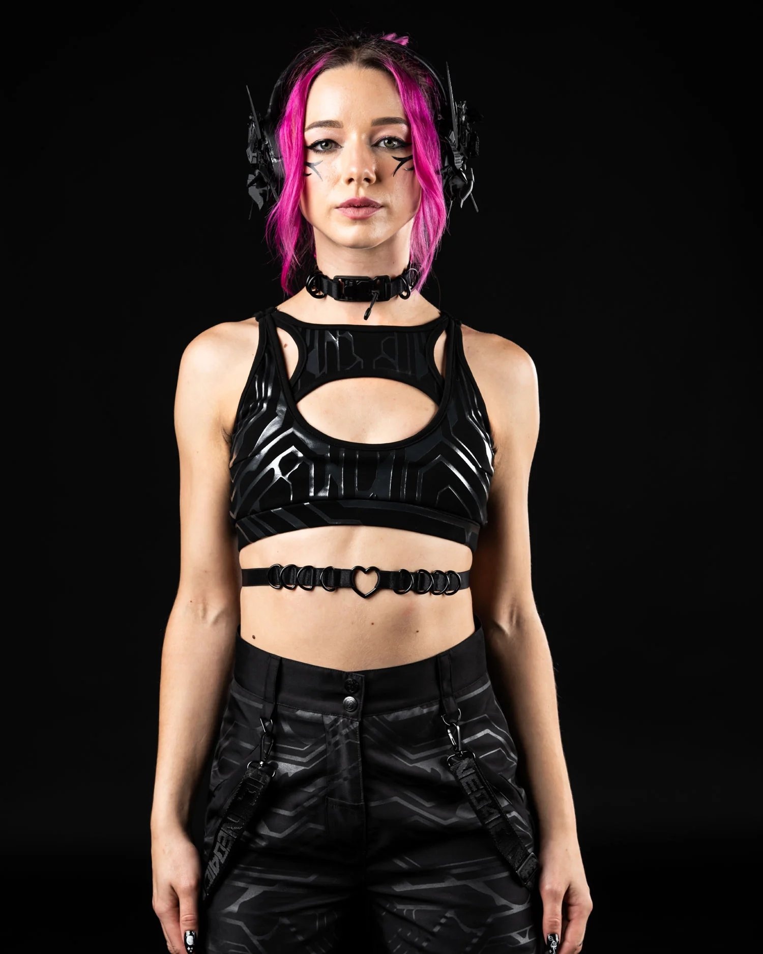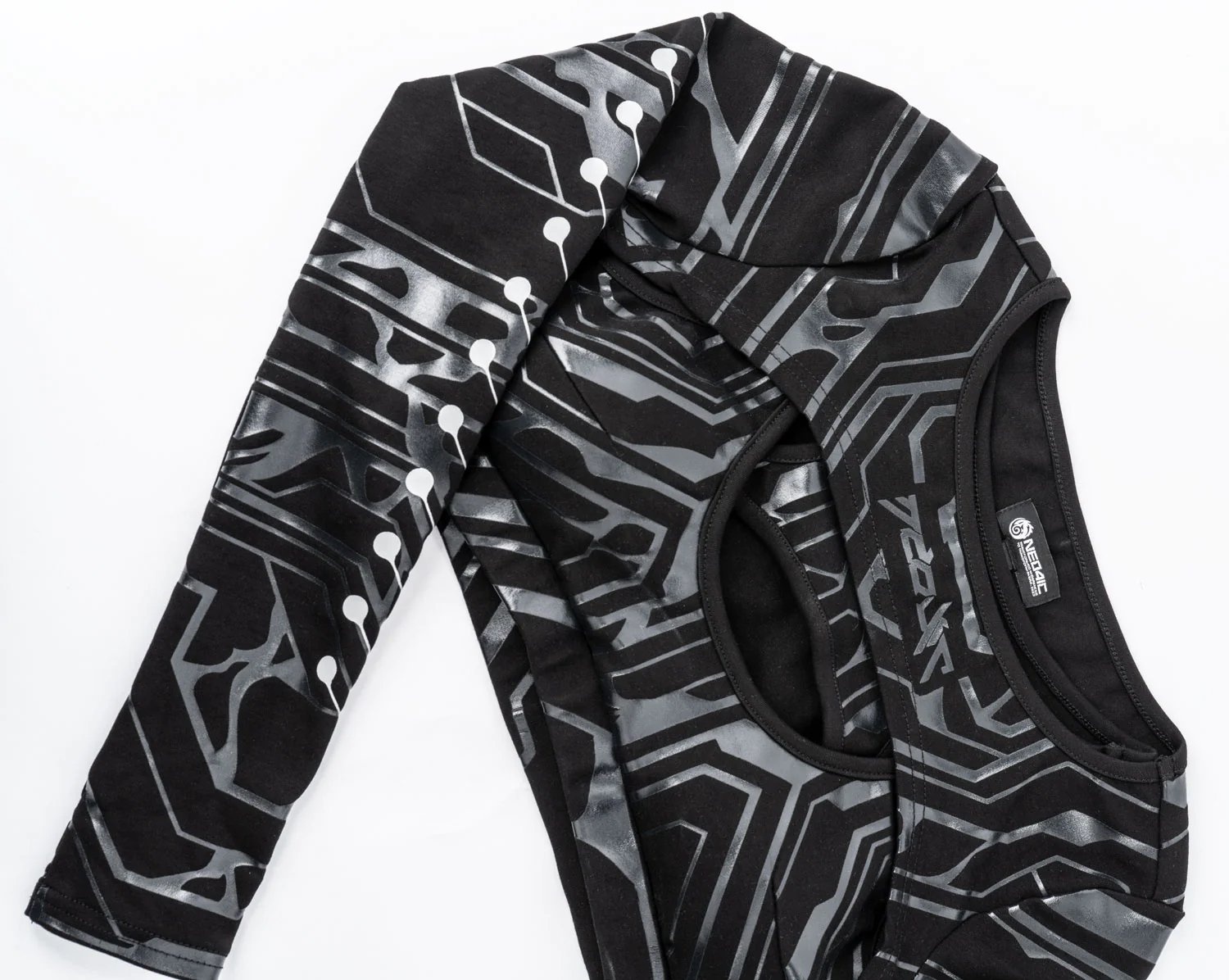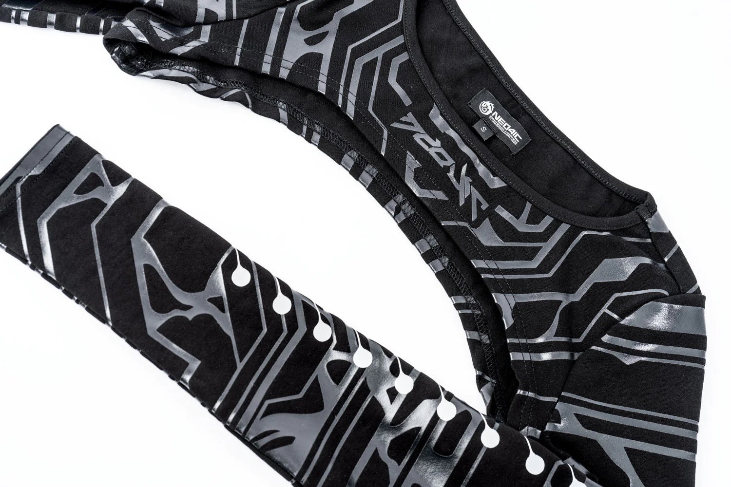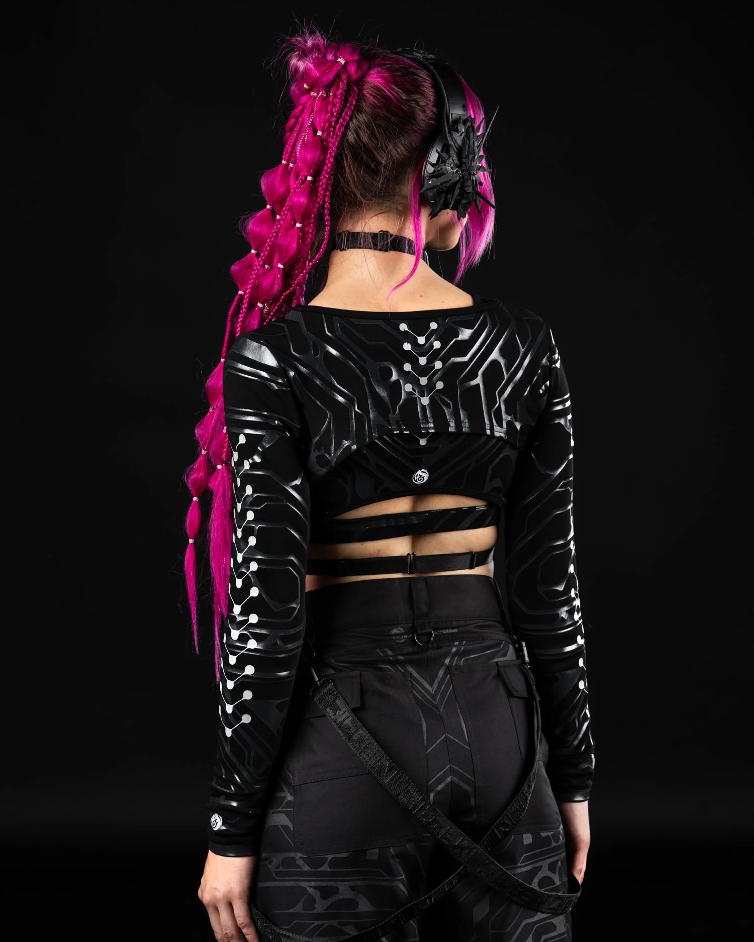 CloseTHE FIRST EDITION SHRUG AND SPORTS BRA PRODUCED TO FLOW LAYERED AND MIX WITH OUR OTHER VEXXIA AND ZYPHR DESIGNS. THIS COMES IN 2 PIECES, THE SHRUG TOP AND THE SPORTS BRA. THEY CAN BE WORN INDIVIDUALLY AND MATCH WELL WITH OTHER NEO4IC PIECES.