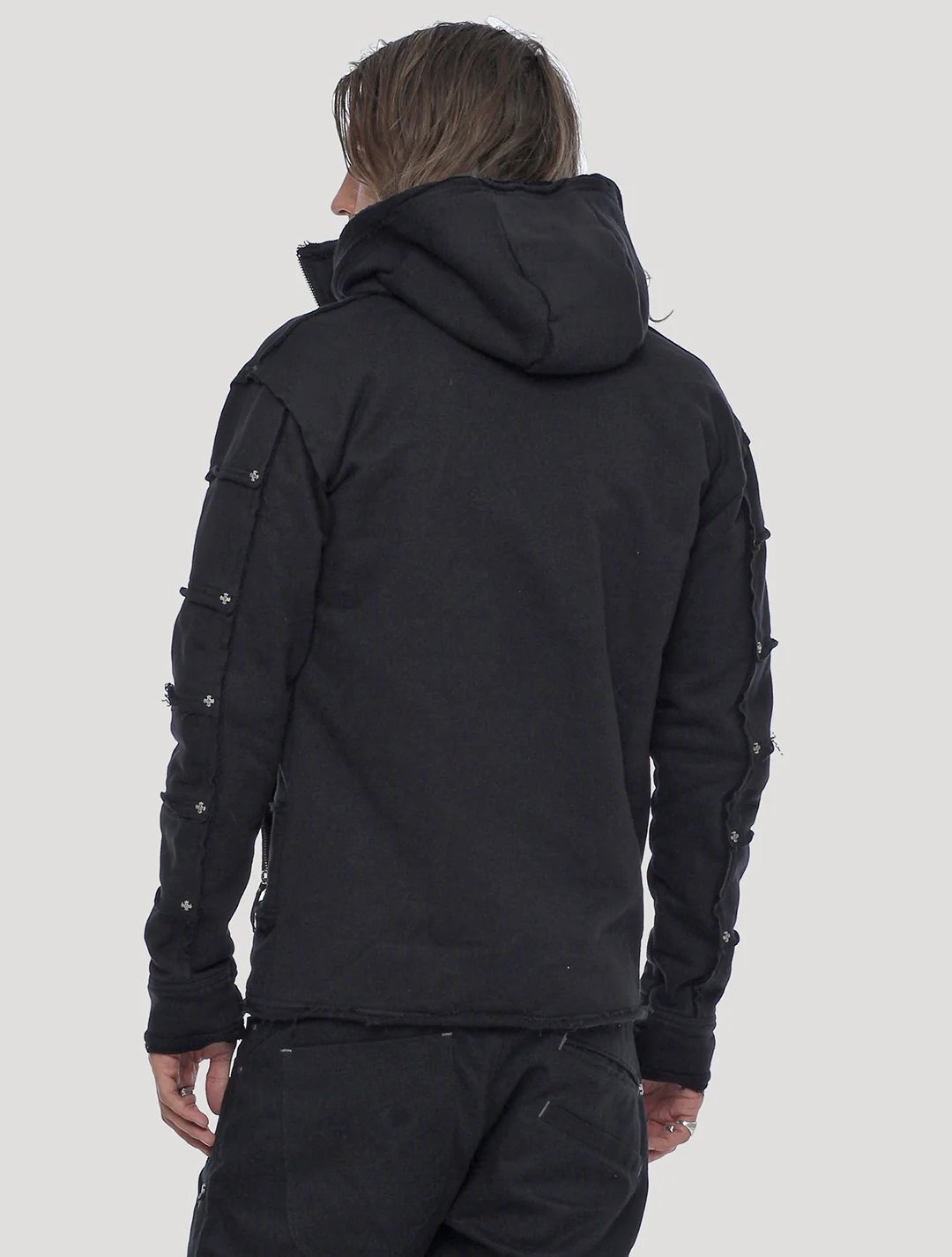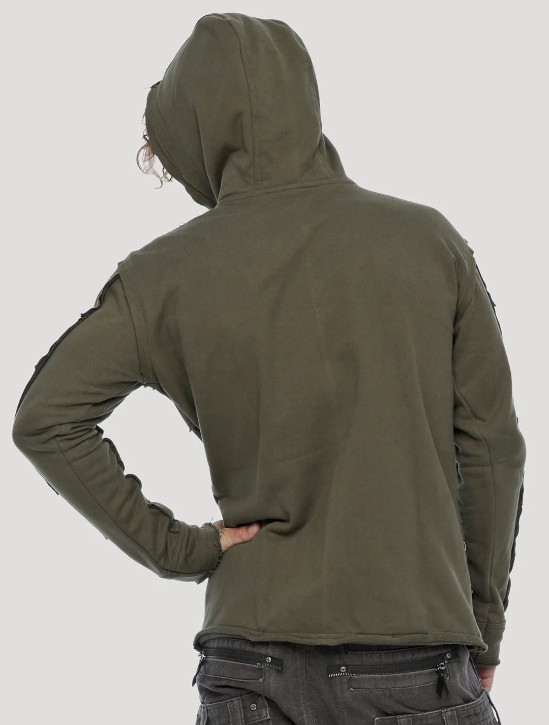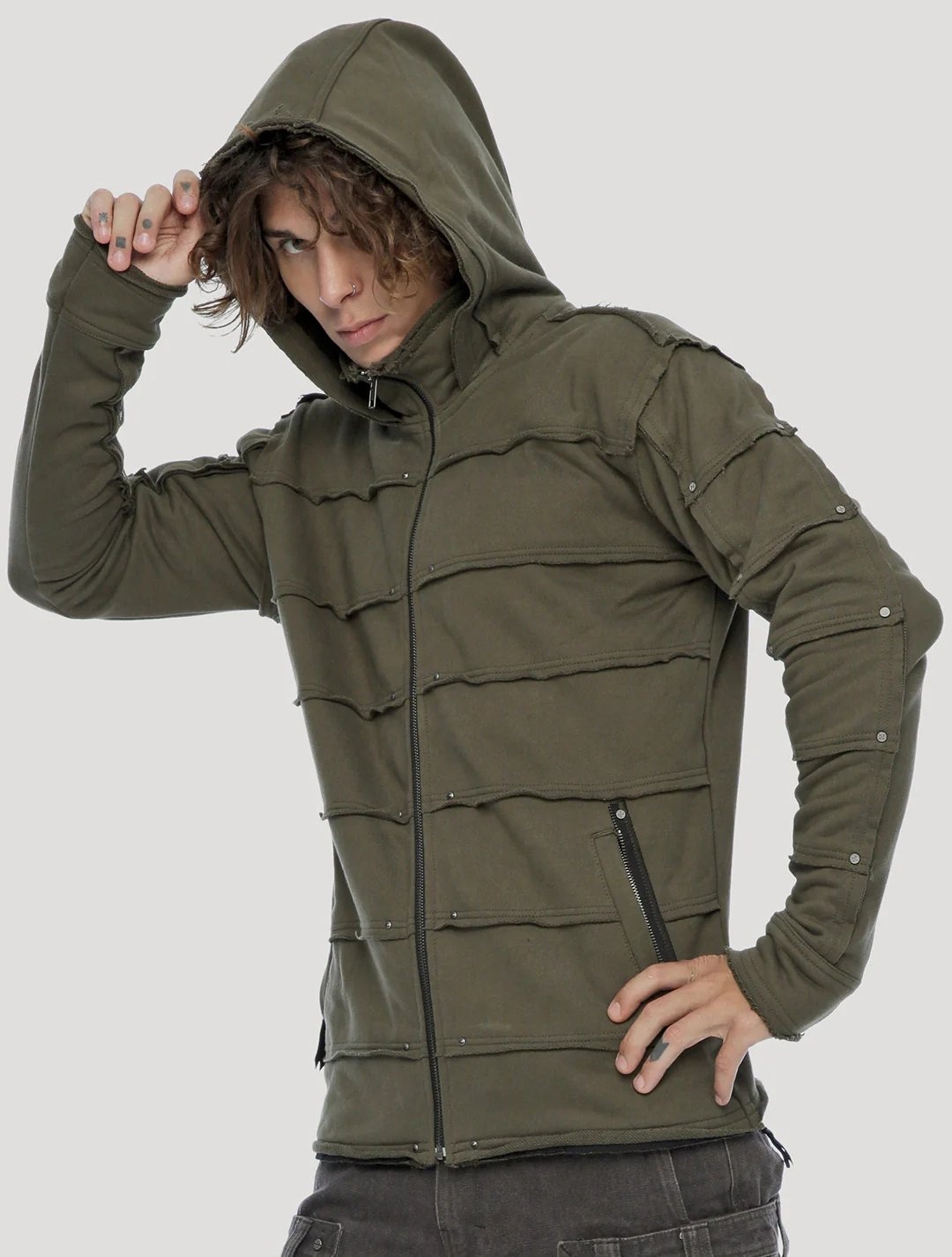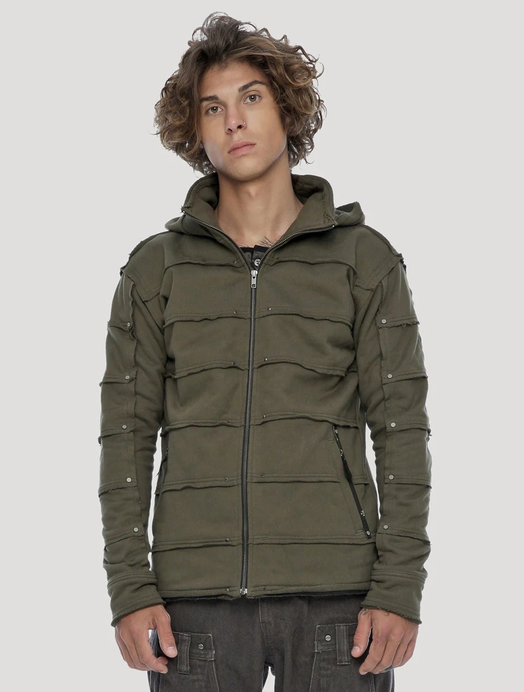 * Parallel panels with rough edge detailing on the front & sleeves - creating horizontal lines.