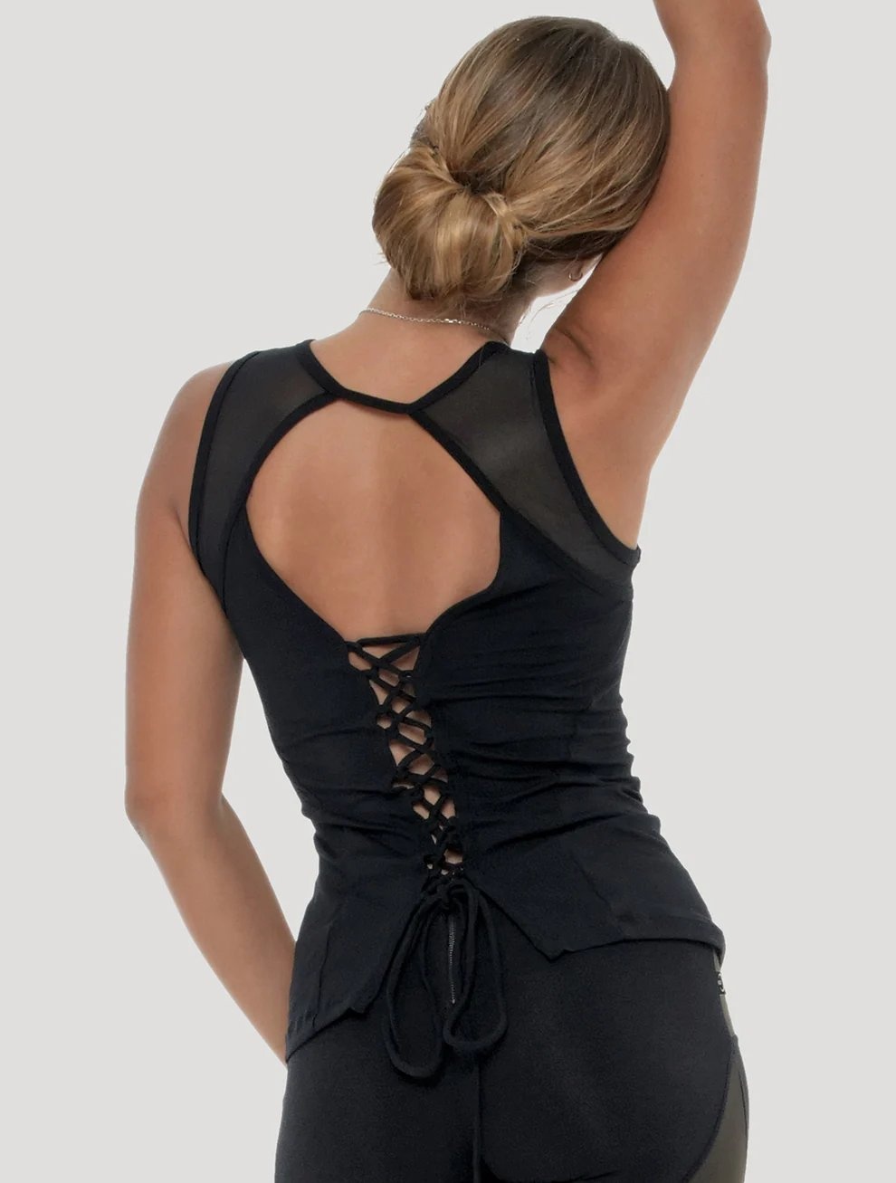 Create an accountA mix of unique cut & sheer fabric gives this sleeveless top a delicate yet daring impression.